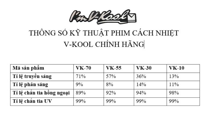 Vkool là thương hiệu phim cách nhiệt cao cấp đến từ Mỹ, nổi bật với công nghệ phủ kim loại đa lớp bằng vàng – bạc – indium. Khác với các dòng phim nhuộm màu thông thường, phim Vkool hoạt động dựa trên nguyên lý phản xạ nhiệt thay vì hấp thụ nhiệt, giúp giảm nóng hiệu quả mà không gây bí kính hay xuống màu theo thời gian.